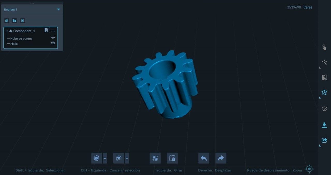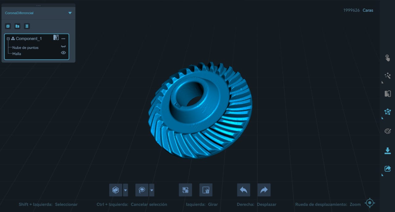 El Escaneo a través de nuestro escáner raptor genera un modelo de malla poligonal o nube de puntos de alta densidad. Este permite ver el modelo superficial, hacer impresión de modelo 3D e igualmente permite escalar modelos desarrollados a mano para su producción.